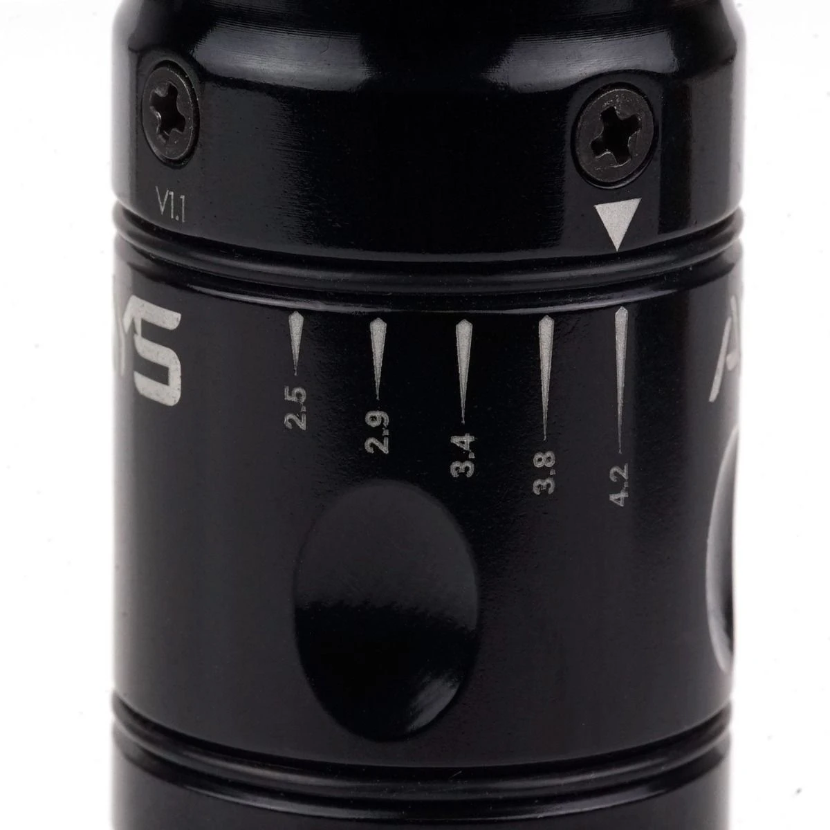 A pen machine with 5 different stroke options, adjustable on the fly via a neat little single-turn ring, meet the Axys Valhalla. The stroke options are 2.5mm, 2.9mm, 3.4mm, 3.8mm and 4.2mm. Now that’s versatile tattooing right here.