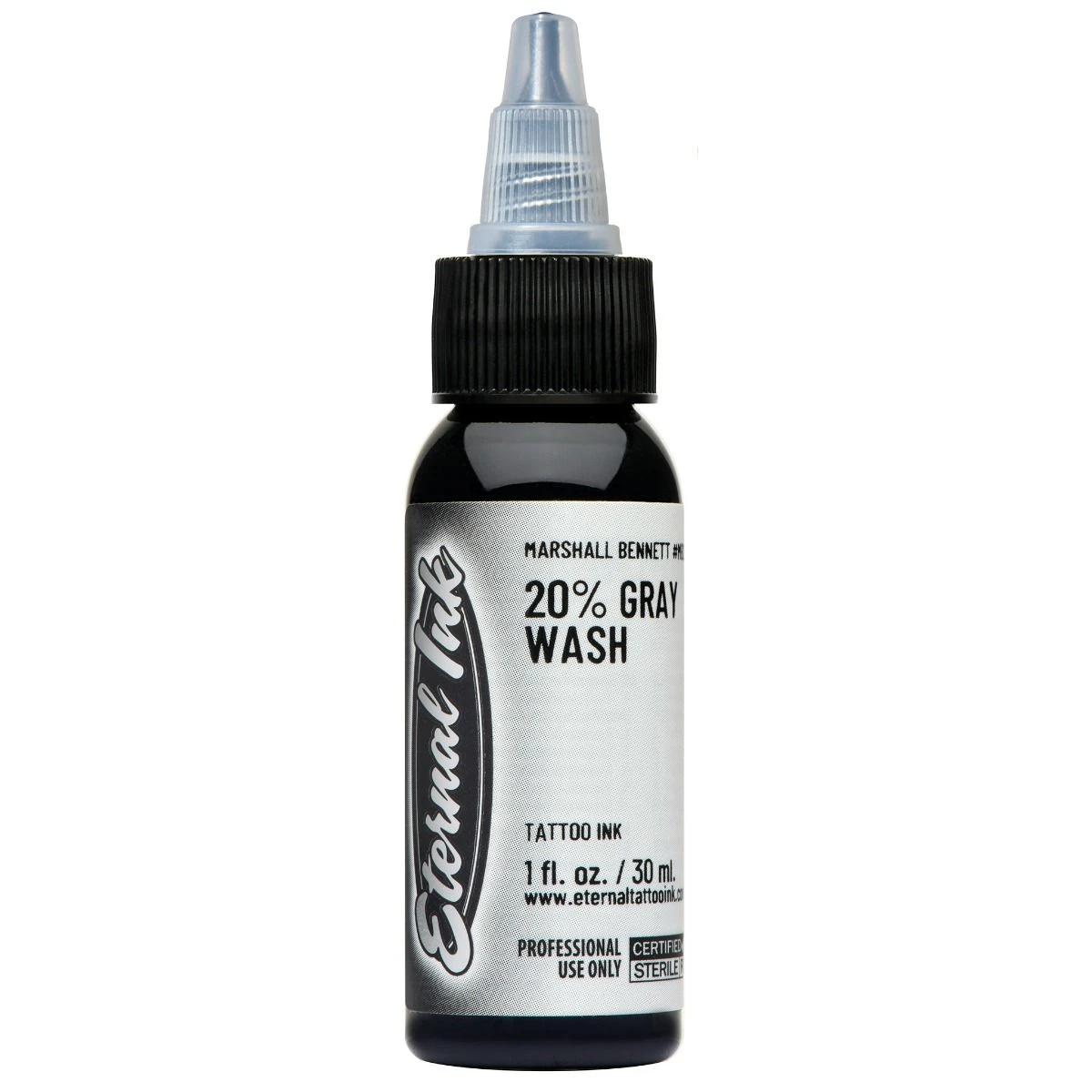 The new Marshall Bennett range of Grey Wash pigments from Eternal are available in four distinct variations of black – 20%, 40%, 60% & 80% allowing artists a greater degree of control when creating black/grey work. The lower the % the lighter the shade of pigment.