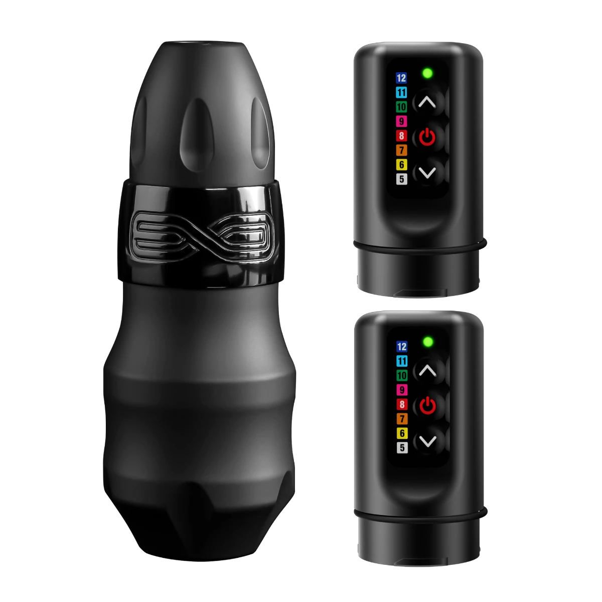 The “modular design” gives the artist the freedom to power the machine with either a traditional power supply via the RCA module and an RCA cable (RCA cable not included), or the PowerBolt battery (up to 10 hours of wireless tattooing).
