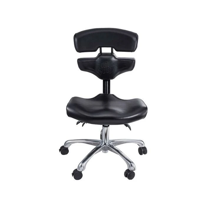 The TATSoul Mako Studio Chair is the space saving solution for your studio. Mako fills a number of versatile roles around the shop and can be used as: -An artist chair: The split backrest and 6 points of adjustment allow the Mako to be customized to support the natural posture of each artist. -Client Chair: The uniquely ergonomic straddle position offered by the Mako Studio Chair also makes it perfect for clients receiving back tattoos. The Mako Studio Chair comes equipped with a sturdy wheeled base and upholstered with smooth, high quality vinyl for easy cleaning and protection against contaminants.