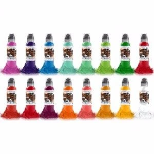 World Famous Ink Master Mike Asian Tattoo 16 colours. For over 50 years World Famous has showed relentless dedication to create better tattoo ink. The ink bottle features an air tight easy twist cap for clean and easy pouring, and less spills. The crystal flex bottle is durable yet easy to squeeze at the same time. World Famous Ink is also vegan friendly and perfect for all types of clients!