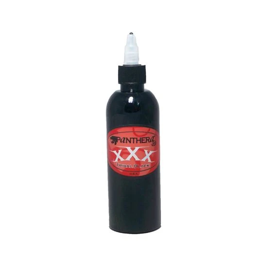 Panthera XXX black tribal ink is a must have ink for filling in large tribal pieces quickly and efficiently. This is one of the best black tribal inks available on the market. It holds extremely well and will never fade, fall out, go dull or turn green. It is made from a pure uncut black pigment making it the black of all black inks available. The ink has a fantastic texture that soaks into the skin wonderfully leaving a smooth, even and consistent finish throughout the tribal work. Molecular technology is used to give the ink a deep velvety gloss with extra durability from the sun. The difference in this ink can be seen after just 6 months and is bound to impress you. Made to the highest of standards and sterilised using gamma rays to meet all European tattoo ink regulations. Suitable for use on vegans.