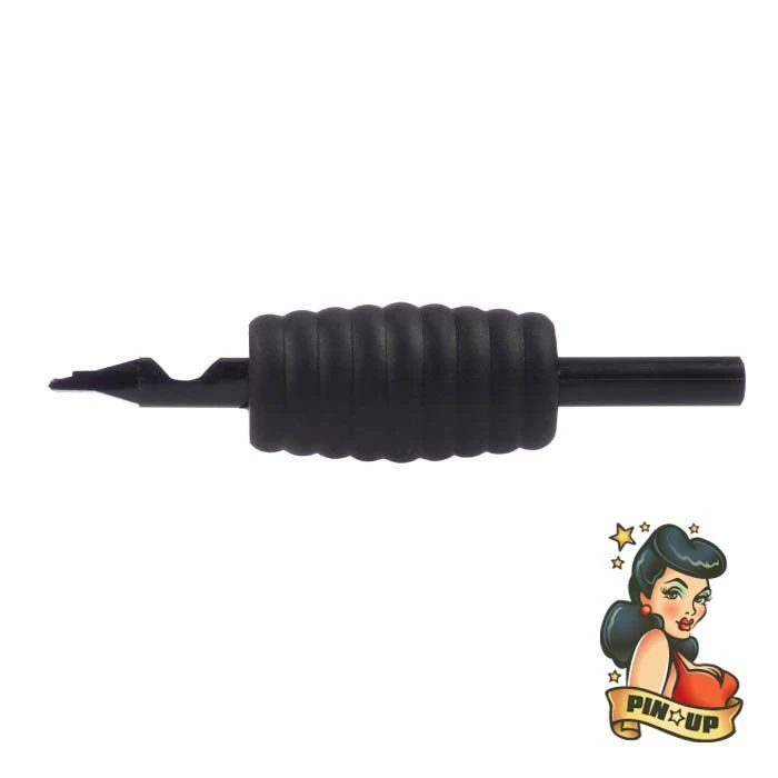 These Magnum / Flat Pin-Up “soft grip” plastic tattoo tubes have a soft rubber grip to maximise comfort and are available with 20mm, 25mm or 30mm diameter grips and can be used with Flat, Magnum, Curved Magnum or Double Stack Magnum Colourer or Shader Needles. The sizes below are for Standard magnums, also known as Weaved magnums, so a smaller width “9 needle Double stack magnum” would need a 5 magnum tube. They are all individually blister packed and sterilized for single use. They will eliminate any discolouration of your tattoo inks that you can get from using stainless steel tips. These tattoo tubes enable you to use your own pre-made needles within them and you can still add bend to your needles if you required. These tattooing full tubes are manufactured so that there is no friction or restriction on the needle bar inside. See Example: M5 Tips/Tubes = Needles: F4, F5, M5, CM5, D/SM7, D/SM9 M7 Tips/Tubes = Needles: F6, F7, M7, CM7, D/SM9, D/SM11, D/SM13 M9 Tips/Tubes = Needles: F9, M9, CM9, D/SM15 M11 Tips/Tubes = Needles: F11, M11, CM11 M13 Tips/Tubes = Needles: M13, CM13 M15 Tips/Tubes = Needles: M15, CM15