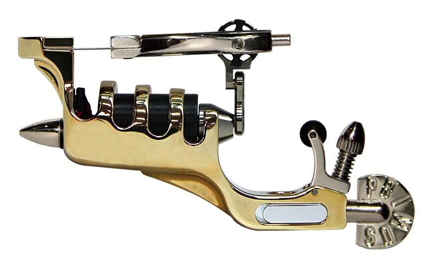 The primus rotary tattoo machine is one of the newer and most stylish designs available as part of the Sunskin range of machines. This particular option offers a special level of softness that doesn?t require any adjustment, making it a revolutionary machine designed more specifically to provide tattoo artists with not just good, solid lining but gradients and fills ? fast and easy. This is an innovative machine that uses a system known as TI FLEX; comprising a jointed lever and two ball bearings, all of which is composed entirely of titanium.