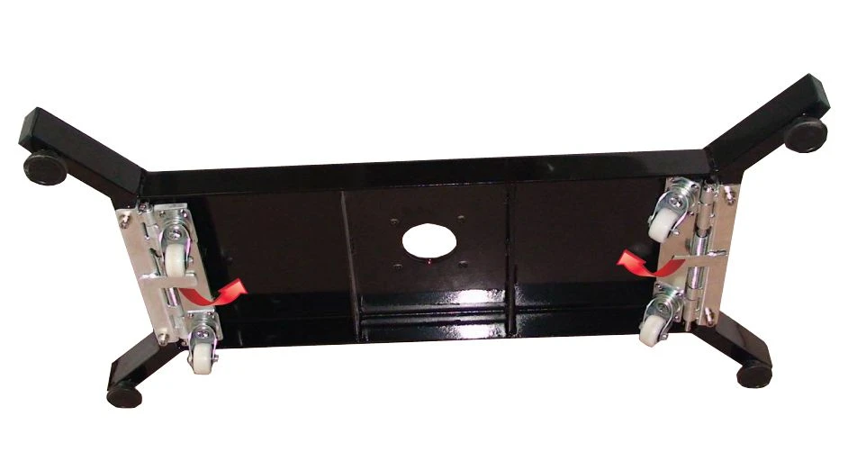 The 370 & 570 Retractable Wheels are great for adding some versatility to your tattoo furniture. They are landing gear style wheels and can be completely retracted to create a totally stationary tattoo chair. However, on the flip side, you can have a full set of wheels that can be lowered to create a moving chair. This accessory is a must if you prefer to have static furniture but sometimes have the need to move it around. The retractable wheels provide you with manoeuvrability and flexibility without changing any of the dimensions of the chair. Please not that these wheels are only compatible with purchases made after April 2009. If there are two visible plastic plugs at the top of the metal base then your furniture will be compatible with these wheels. However, if your base does not have these plugs you will need a retrofit kit in order to upgrade the chair to allow for compatibility with the wheels. This is a simple procedure and could make all the difference to your studio.
