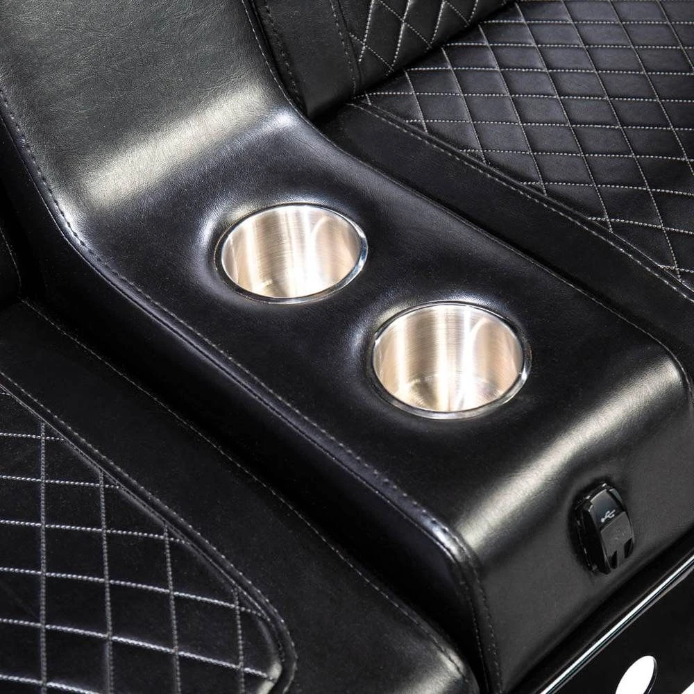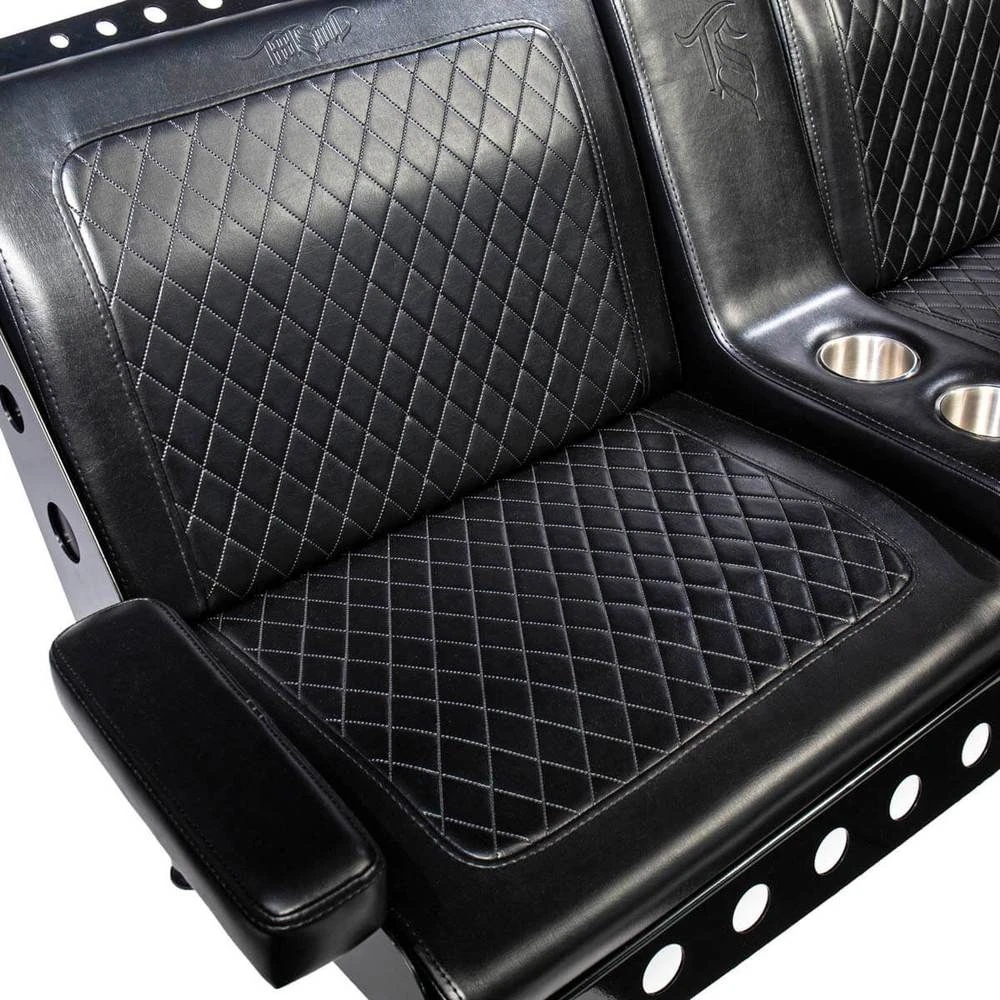 The bench has integrated drink holders and even two USB charging stations. The bench is built to a high standard and fits perfectly into any environment with Black and Oxblood colour options. You can easily add your studio name to the nameplate to customise the bench for your studio.