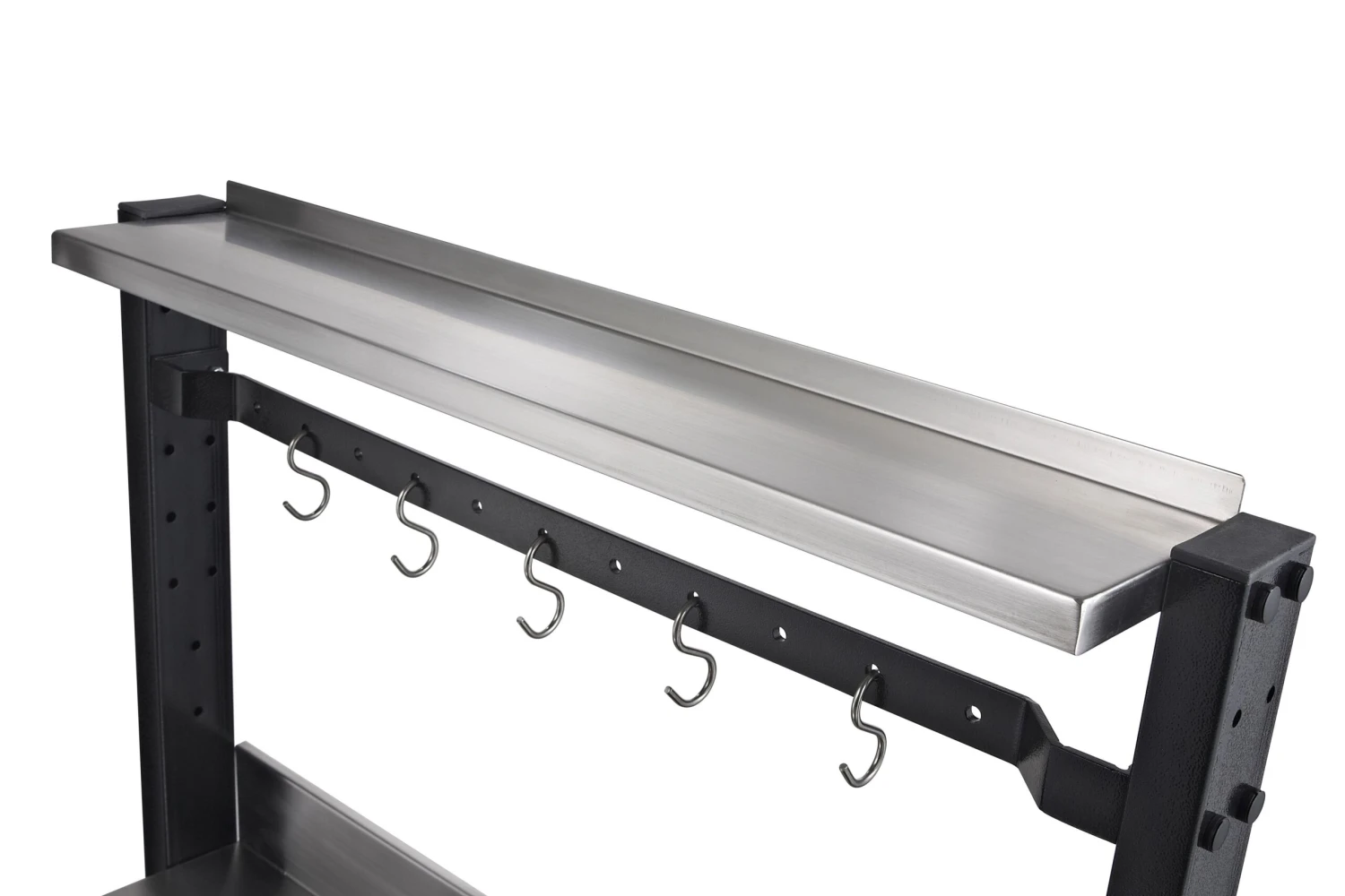 This includes the upper shelf, which is a perfect size for ink holder trays, glove boxes, or an ideal solution for storing your other essentials, such as cleaning fluid bottles, mixer solutions and so on. The use of the space is incredibly flexible, offering just about any solution depending on your individual requirements and preferences. Of course the shelf also includes the bar for the hooks, which are supplied separately.