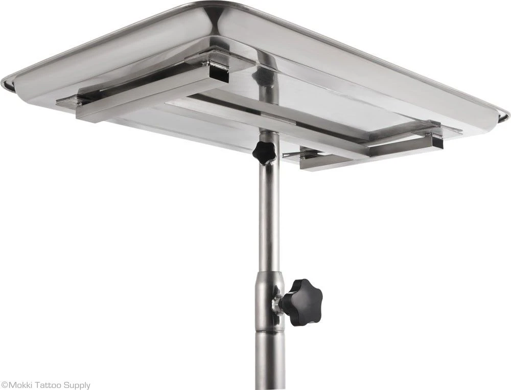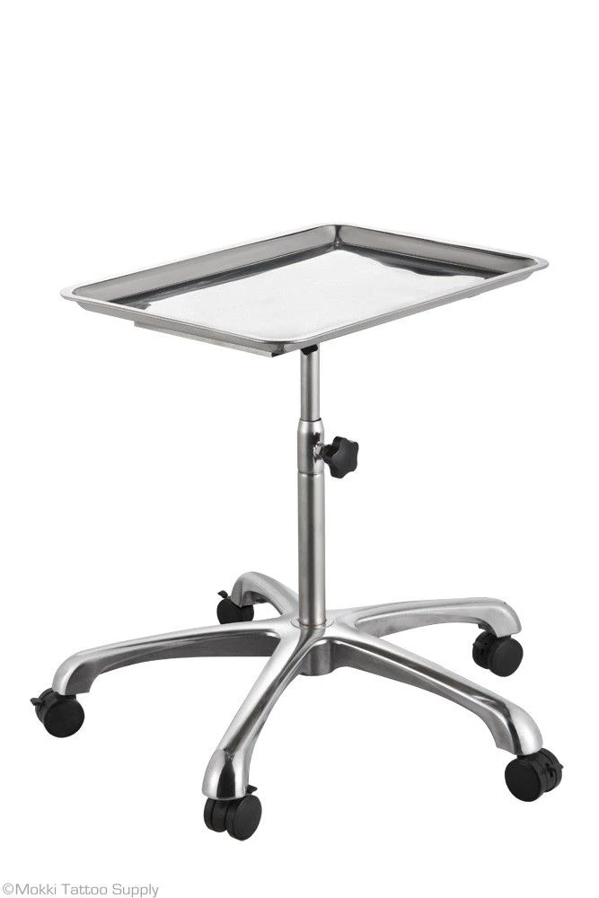 Barber DTS are pleased to offer the new TATSoul Mayo Tray, a complete stainless steel rolling tray. Height adjustable and convenient for moving around tattooing equipment. Specifications: Adjustable Height Range: 20.5″” – 31.5″” Stainless Steel Tray Dimension: 14″” x 20″” x 1″” depth Stainless Steel Base Dimension: 25″” Diameter All Heavy Duty Stainless Steel finish Reinforced Stainless Steel Bars under tray Lockable Casters STRUCTURAL LIFETIME WARRANTY