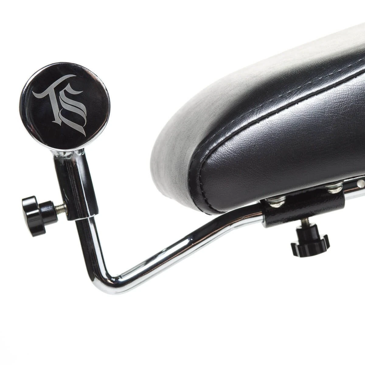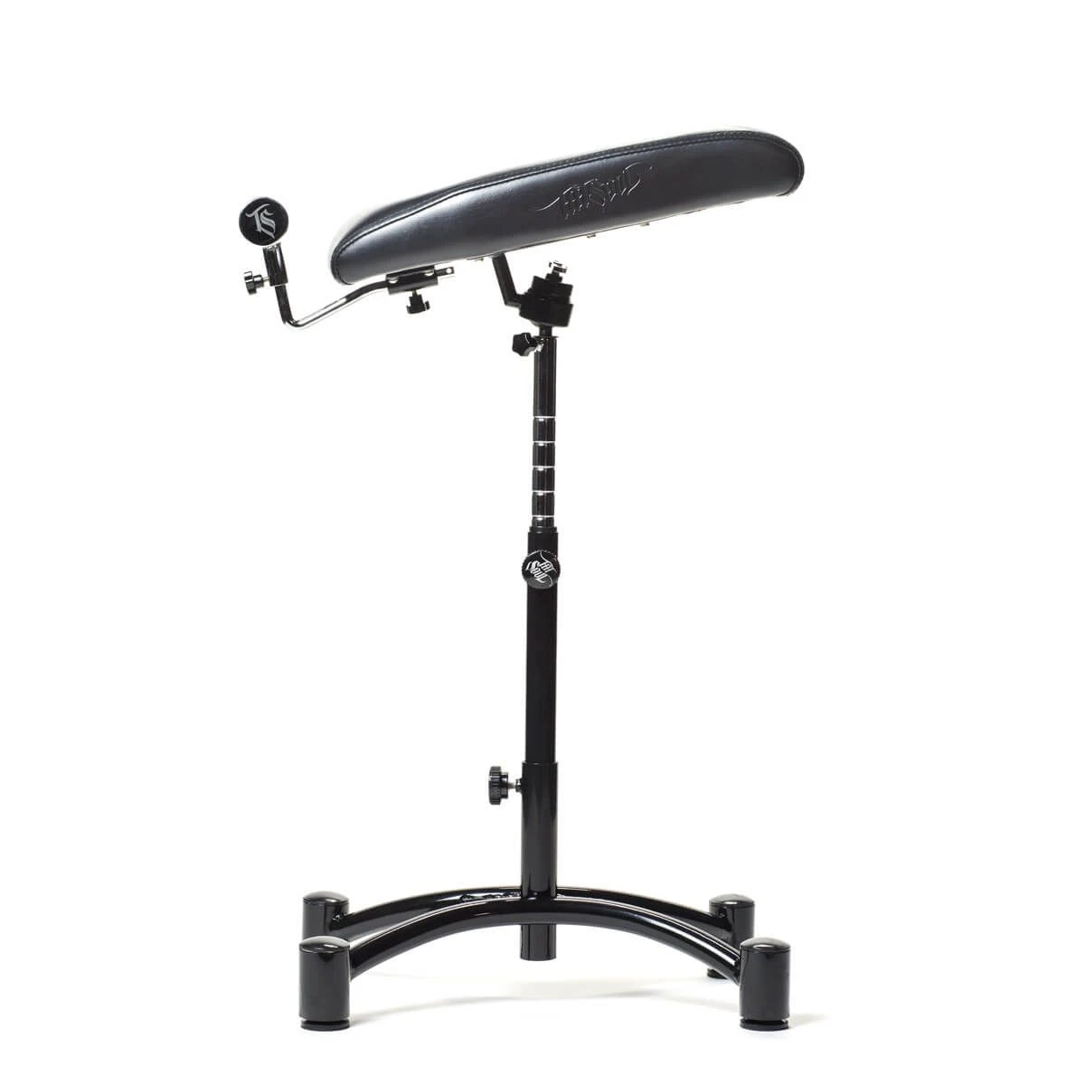 The chrome-plated hand grip helps to stabilise the arm further when the work becomes even more delicate. The Oros Armrest can be adjusted in height and works as a stationary piece designed to perfectly accompany any TATSoul chair and provide a stable, comfortable surface for arm tattoos. It features a wide foam cushion with an adjustable 360° ball mount and one-of-a-kind chrome-plated hand grip for ultimate comfort for both client and artist. The base is height adjustable and also serves as a stable footrest for the artist.