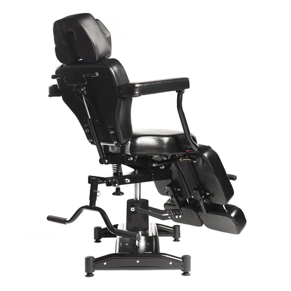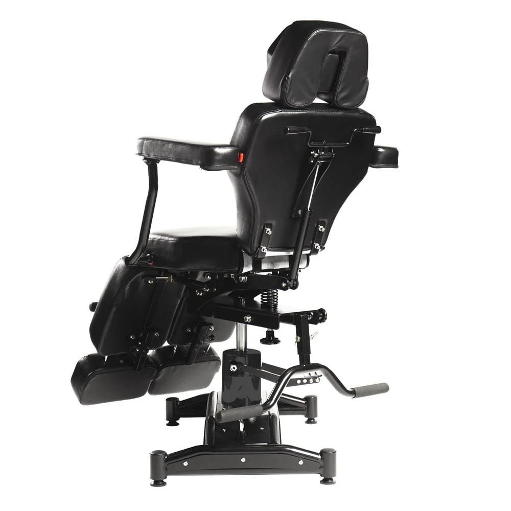 The Oros Ltd Edition Tattoo Client Chair is a full-on, supercharged 680 Oros. Featuring built-in retractable wheels the 680LE comes with a ‘murdered-out’ all-black look from top to bottom including the pump cover and armrest supports.